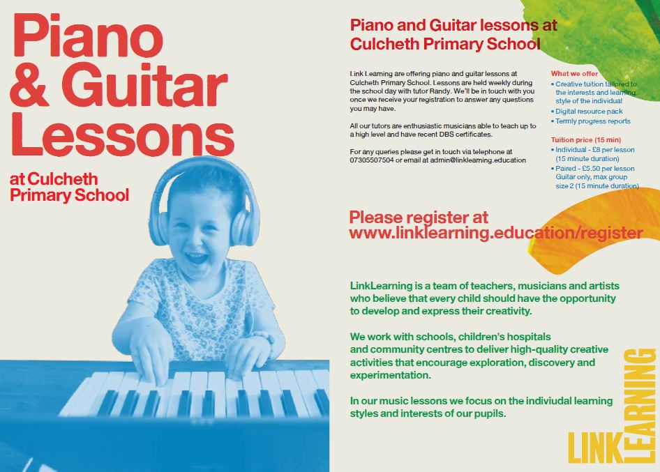 If your child would like to learn the piano or guitar, please get in touch with Link Learning. Thanks